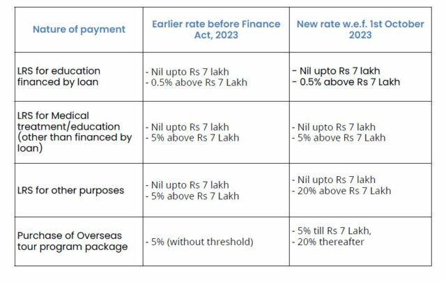 The Budget 2023-24 amended certain provisions related to the Tax Collection at Source [TCS] on payments under the Liberalized Remittance Scheme [LRS] and on purchase of overseas tour program packages. The said amendments pertained to the increase in the rate of TCS from 5% to 20% with effect from 01st July 2023. Further, by way of amendment in Foreign Exchange Management (Current Account Transaction) Rules vide an e-gazette notification dated 16th May 2023,